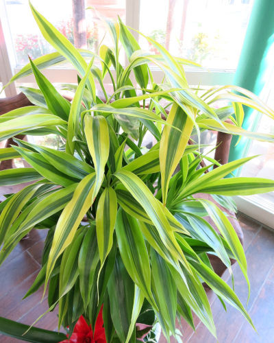 葉っぱは、緑や黄緑など、様々なグリーンのストライプが