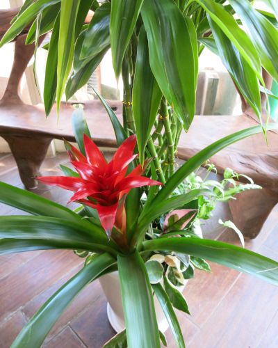 ▲華やかなグズマニアが御祝気分を盛り上げます!