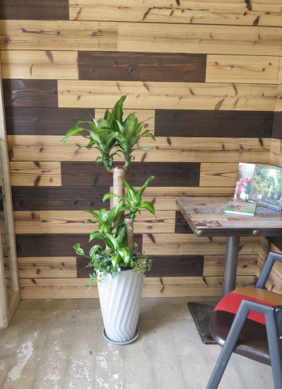 ▲足元はミニ観葉を寄せ植えし華やかに仕上げています。