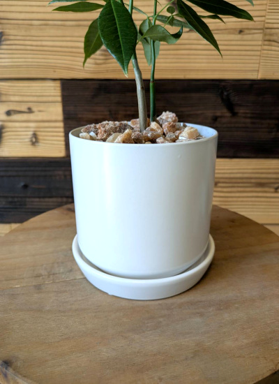 【育てやすい植物として有名です。シンプルで飽きのこない定番グリーン】 手のひらを広げたような明るいイメージの葉を旺盛に伸ばすパキラ。白い陶器鉢が清潔感を添え、どんなお部屋にも合わせやすいデザインです。白い鉢に「おめでとう!」の素直な気持ちをこめて、引越し祝いや開店祝いなどに贈ってみませんか?お世話も簡単で、長く楽しめるインテリアグリーンとして喜ばれますよ。 【パキラの花言葉】 · パキラの花言葉は「快活・勝利」。風水では金運や仕事運を高める縁起木として親しまれています。