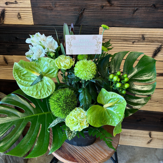 ひとくちにグリーンのお花といっても様々な色や質感があります。 それぞれの花や葉が創り出す色合いは、まるで吸い込まれるようなグリーンの魅力に溢れています。 お花好きの目が肥えたお母さんにきっと喜んでいただけますよ! |