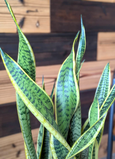 ▲つやつやのまっすぐに伸びる丈夫な葉が魅力的なサンスベリア
