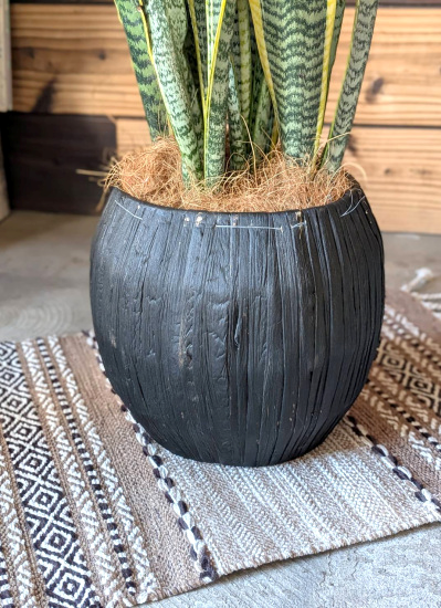 サンスベリアは、すっと立ち上がるシャープな葉姿が印象的な観葉植物です。すっきりとしたシルエットが空間にモダンな雰囲気を添え、オフィスや店舗のインテリアにも自然と馴染みます。とても丈夫で育てやすい植物としても知られ、忙しい環境でも取り入れやすいのが魅力です。落ち着いた黒のバスケットに収めることで、スタイリッシュで洗練された印象に。表面にはヤシ繊維をあしらい、ナチュラルな温かみも感じられる上品なグリーンギフトに仕上げました。