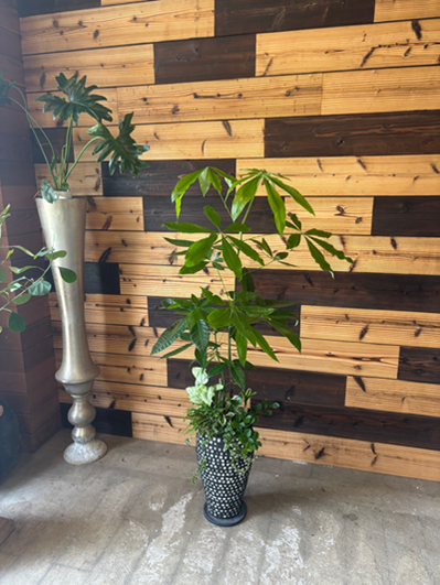 木立ちモンステラと姫モンステラの競演!とってもアートな仕上がりです。 |