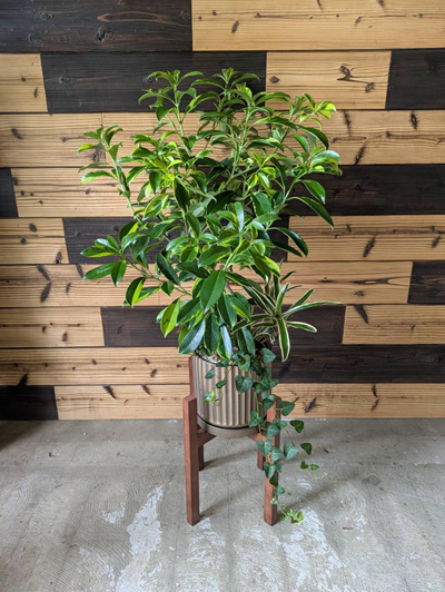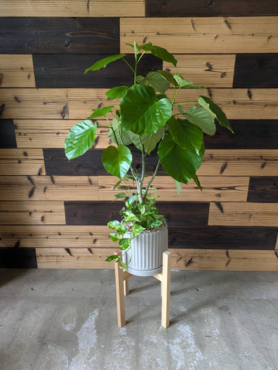 ハート形の葉がかわいい印象のウンベラータです。木製スタンドとセットすることでよりおしゃれな飾り方ができます。 |