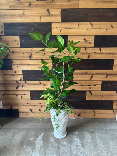 クリニック様へ開院の御祝にご注文いただきました。ななめになびくような樹形のジャマイカです。ジャマイカは濃い緑色の葉が生命力を感じさせ、また性質も強健で育てやすいので、贈り物に最適です。 |